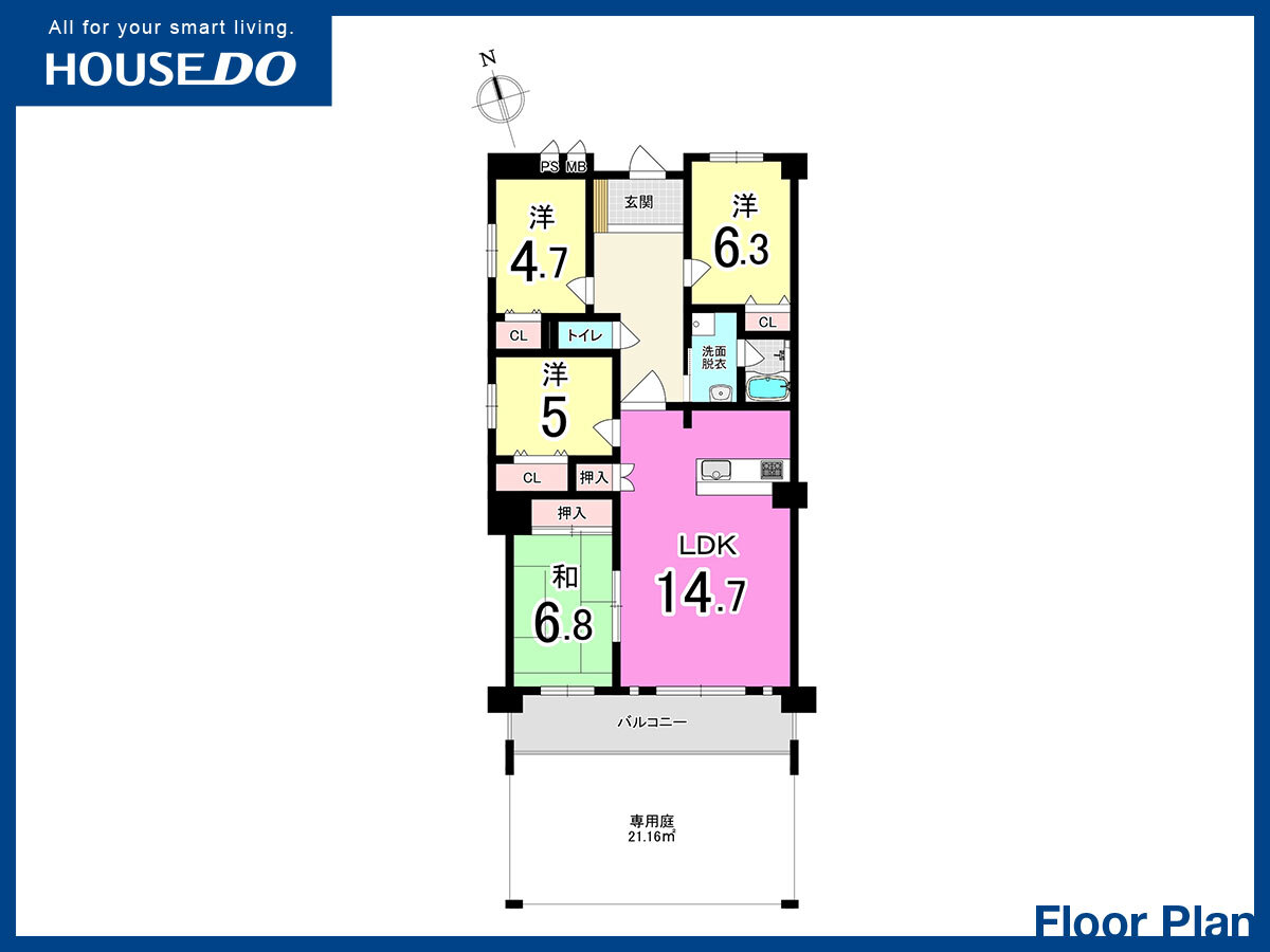 【ハイマート若松II】4LDK中古マンション♪都市ガス♪専用庭♪角部屋♪深町小学校・若松中学校♪