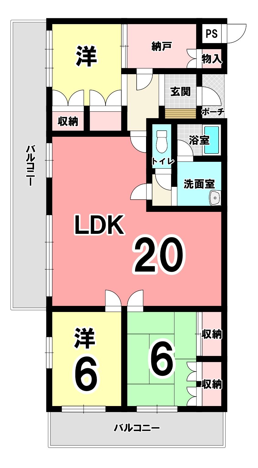 | バルコニー面積 | 20㎡ | 向き | 南東 |